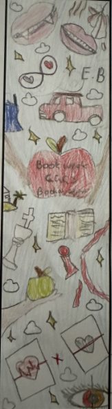 Bookmark 4 Laura Phipps with her bookmark based on The wonderling by Mira Bartok